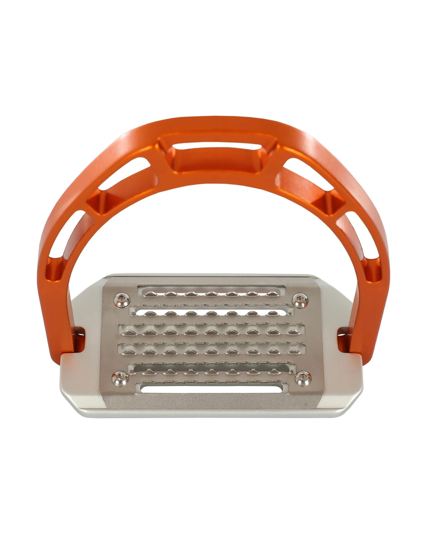 The upper footbed is made of stainless steel, with long horizontal holes. The 5° inclined tread helps riders to assume the correct posture, relieving tension in the ankles, calves, knees and hips.
