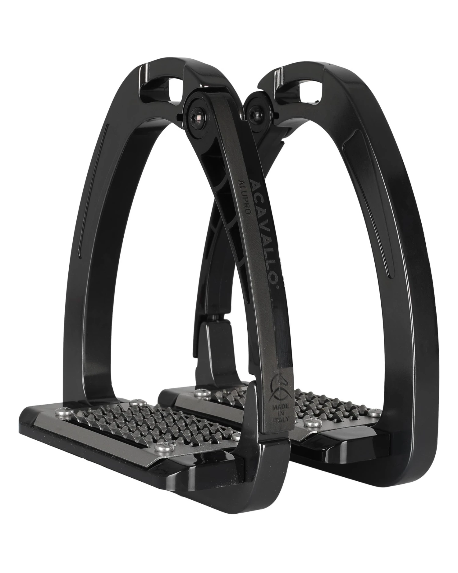 Acavallo® stirrups featuring an innovative patented side opening, resulting from years of research and development.