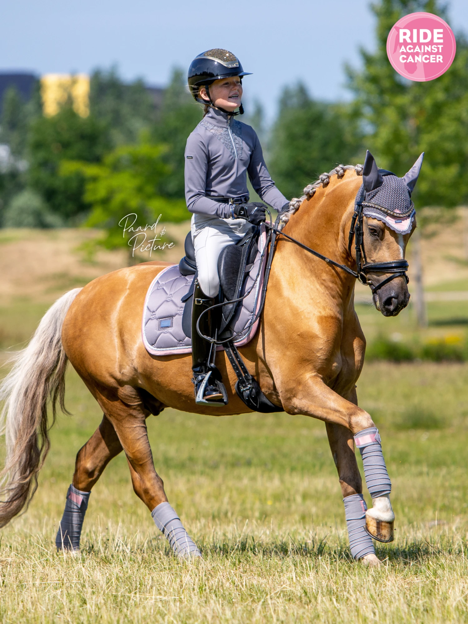 Elegant saddle pad in grey with pink and silver details. Decorated with the Equestrian Stockholm badge in silver. The material is treated with High IQ cool comfort which gives the saddle pad quick dry and moisture wicking abilities. This helps your horse stay dry and fresh longer. Style with other pieces from our Dusty Pink collection for a head-to-toe stylish look.