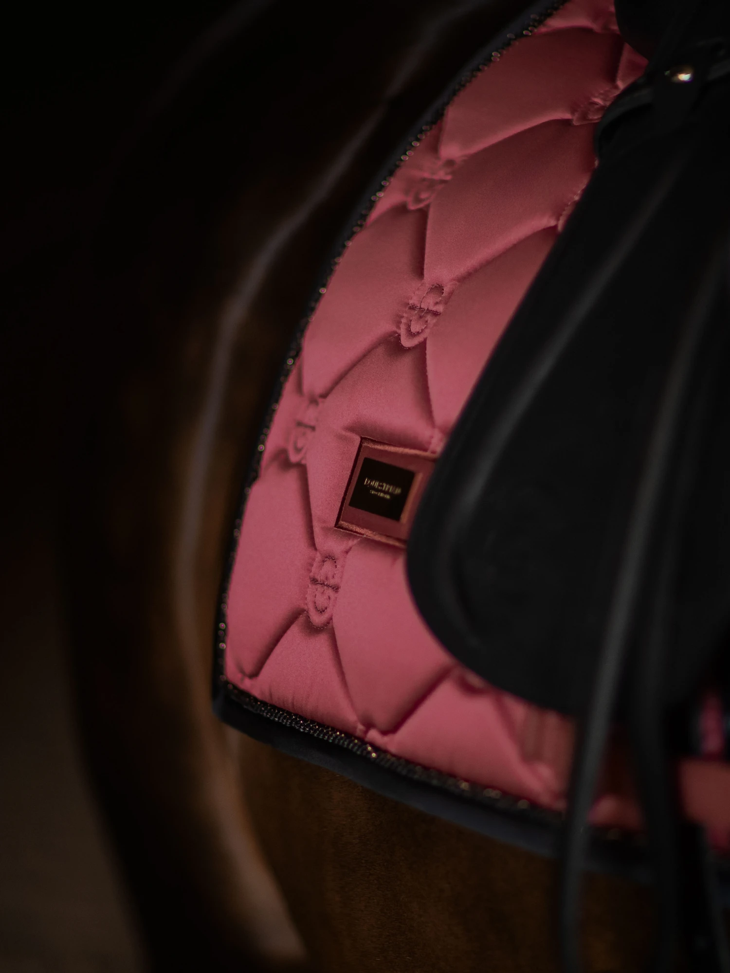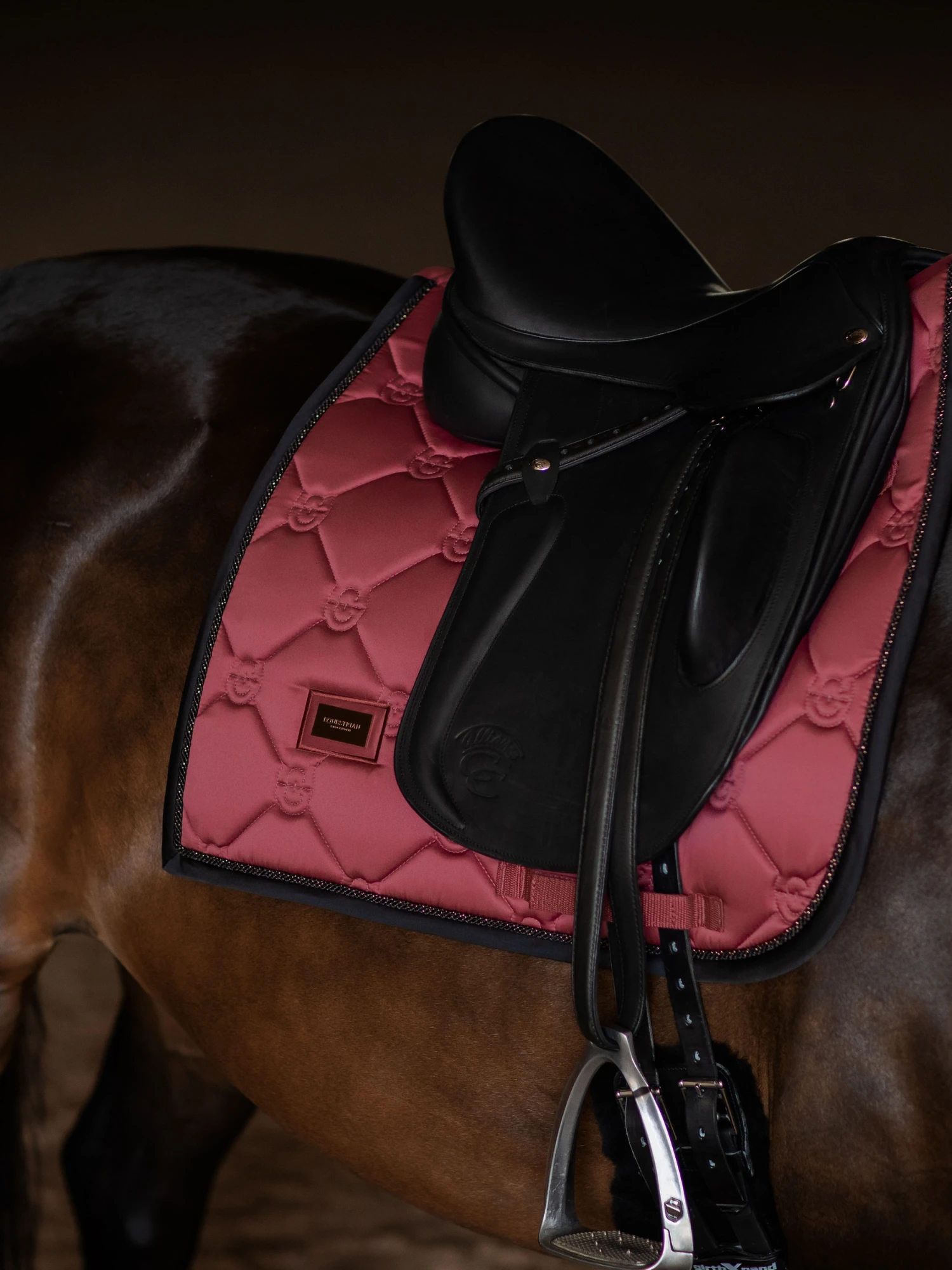 Elegant saddle pad in an soft rouge red colour with black and rose gold details. Decorated with the Equestrian Stockholm badge in copper. The material is treated with High IQ cool comfort which gives the saddle pad quick dry and moisture wicking abilities. This helps your horse stay dry and fresh longer. Style with other pieces from our Soft Rouge collection for a head-to-toe stylish look.