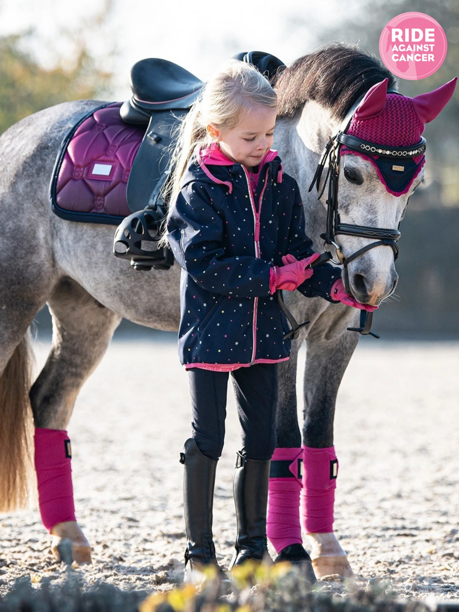 Exclusive saddle pad designed in a bold fuchsia pink and navy gradient with stylish details. Specifically designed to fit your horse with anatomical shape. Crafted in a glossy, dirt repellent material that breathes well and keeps your horse dry throughout sweaty session. Quilted in the stylish Equestrian Stockholm logo. Style with other pieces from the same collection for a complete look.