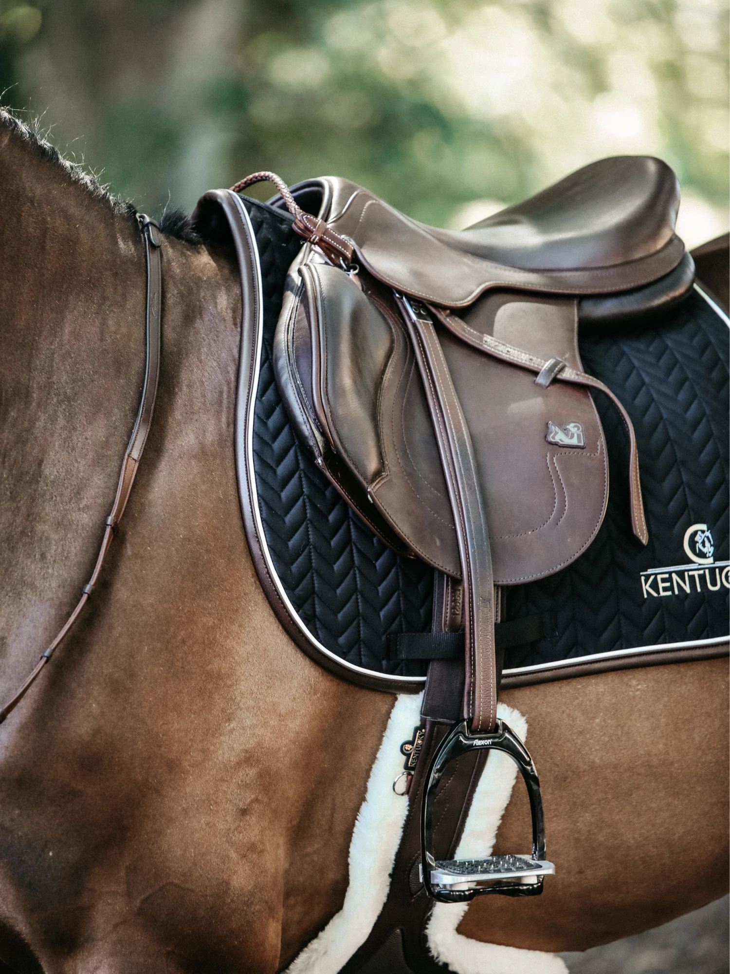 The Saddle Pad Leather Fishbone features a very classy leather binding and the stylish Kentucky logo.