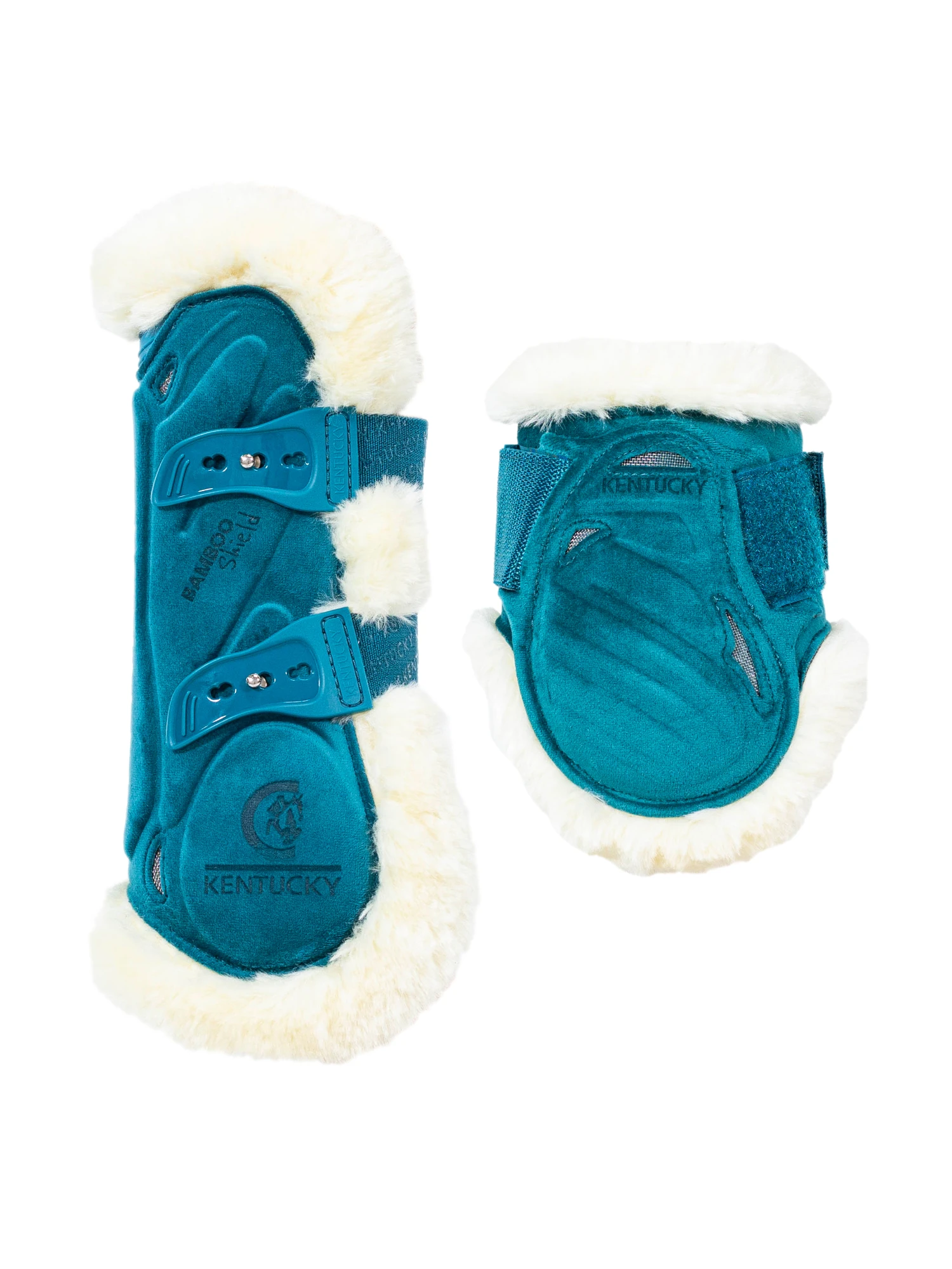 The Vegan Sheepskin Tendon Boots Bamboo Elastic Velvet have of our highly breathable Vegan Sheepskin that is used since many years for our famous Shipping halter, Show Rug and girths.